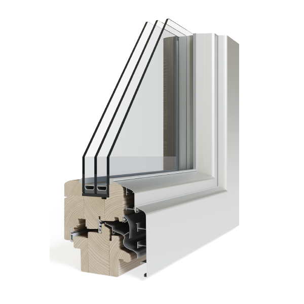 The 78mm Wood & Aluminum Triple Glazed Window combines the natural beauty of spruce wood on the inside with the strength and weather resistance of aluminum on the outside. This combination offers an elegant appearance, low exterior maintenance and long lasting performance, making it an excellent choice for both contemporary and traditional architecture.